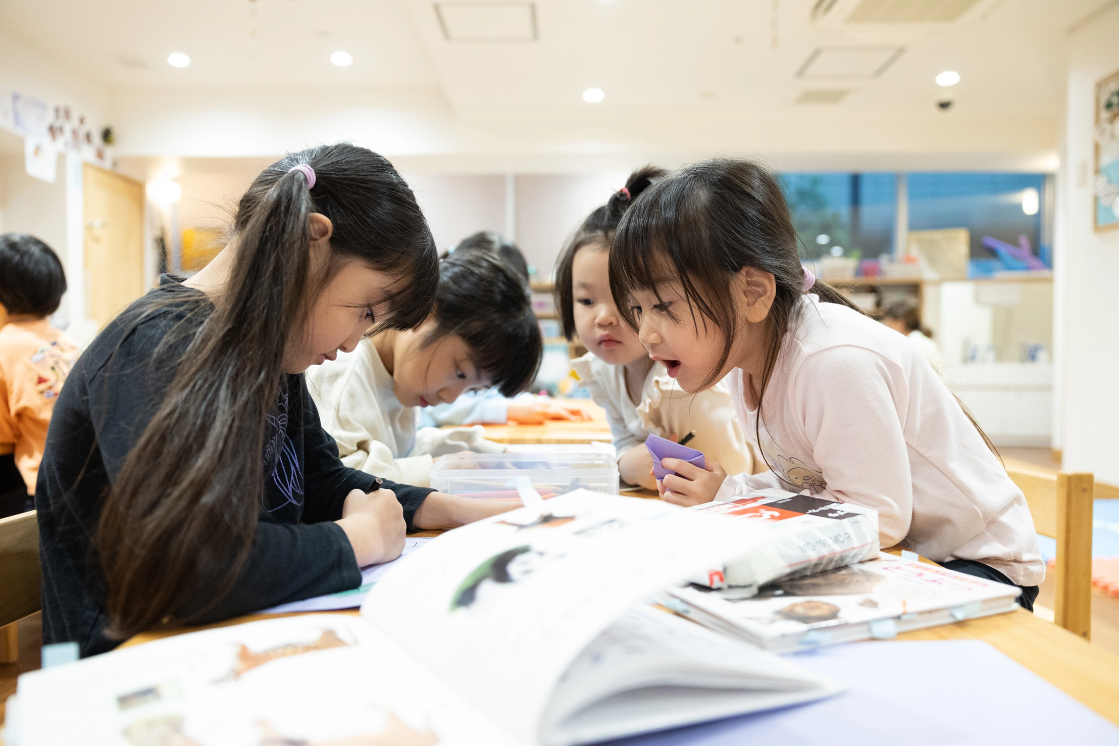 千石園に併設する絵本図書館(蔵書6,000冊)から、130冊が移動図書館として全園を巡回しています。絵本はこどもたちの世界を広げる扉。移動図書館の本はご家庭への貸し出しもしており、お迎え時に親子で楽しそうに選ぶ姿が見られています。